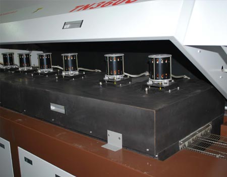 1:加熱系統(tǒng): 六溫區(qū)全熱風無鉛回流焊TN360C加熱系統(tǒng)采用節(jié)能的鎳烙發(fā)熱管,技術先進,壽命長。熱風循環(huán)系統(tǒng),使PCB及元器件受熱均勻,效率高,升溫速度快。