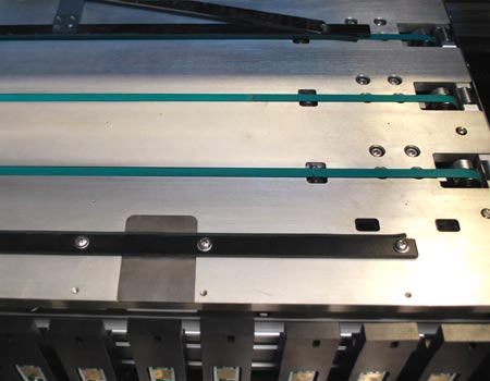1.電路板傳動采用精密電機(jī)帶動工業(yè)皮帶配合精密導(dǎo)軌實(shí)現(xiàn),有效提高貼片精度。