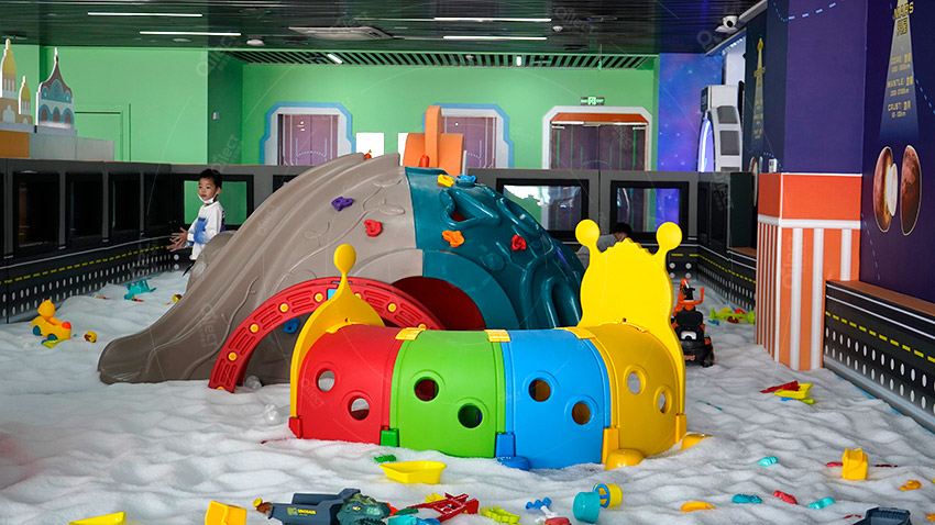 占地面積:1070㎡,分為10個功能區域:水吧,積木區,益智手工區,火星科考站,太空城堡,彈跳迷宮,魔鬼滑梯,蹦蹦云,墜落