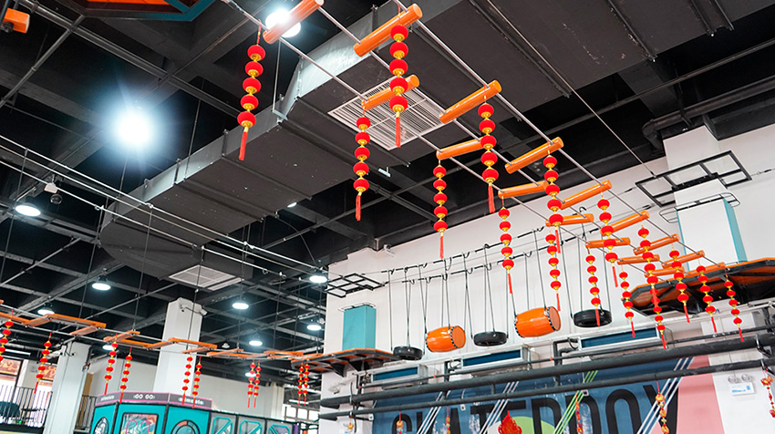 玩膩了地面上的滑梯,沒關系,我們在空中也設計了游玩拓展步道,木桶、輪胎、搖擺橋、獨木橋、圓筒通道、“M”字吊橋等多個項目任你體驗,更有空中自行車項目,勇者來戰!