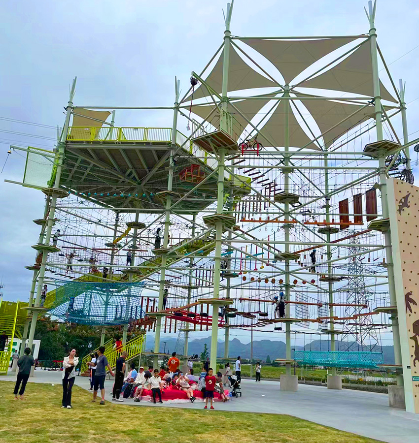醒目的外觀設(shè)計(jì)美感,豐富有趣的拓展探險(xiǎn)項(xiàng)目,完備的安全保障系統(tǒng)和專業(yè)的運(yùn)營(yíng)指導(dǎo)團(tuán)隊(duì),讓它成為樂園營(yíng)地最耀眼的“明星”。