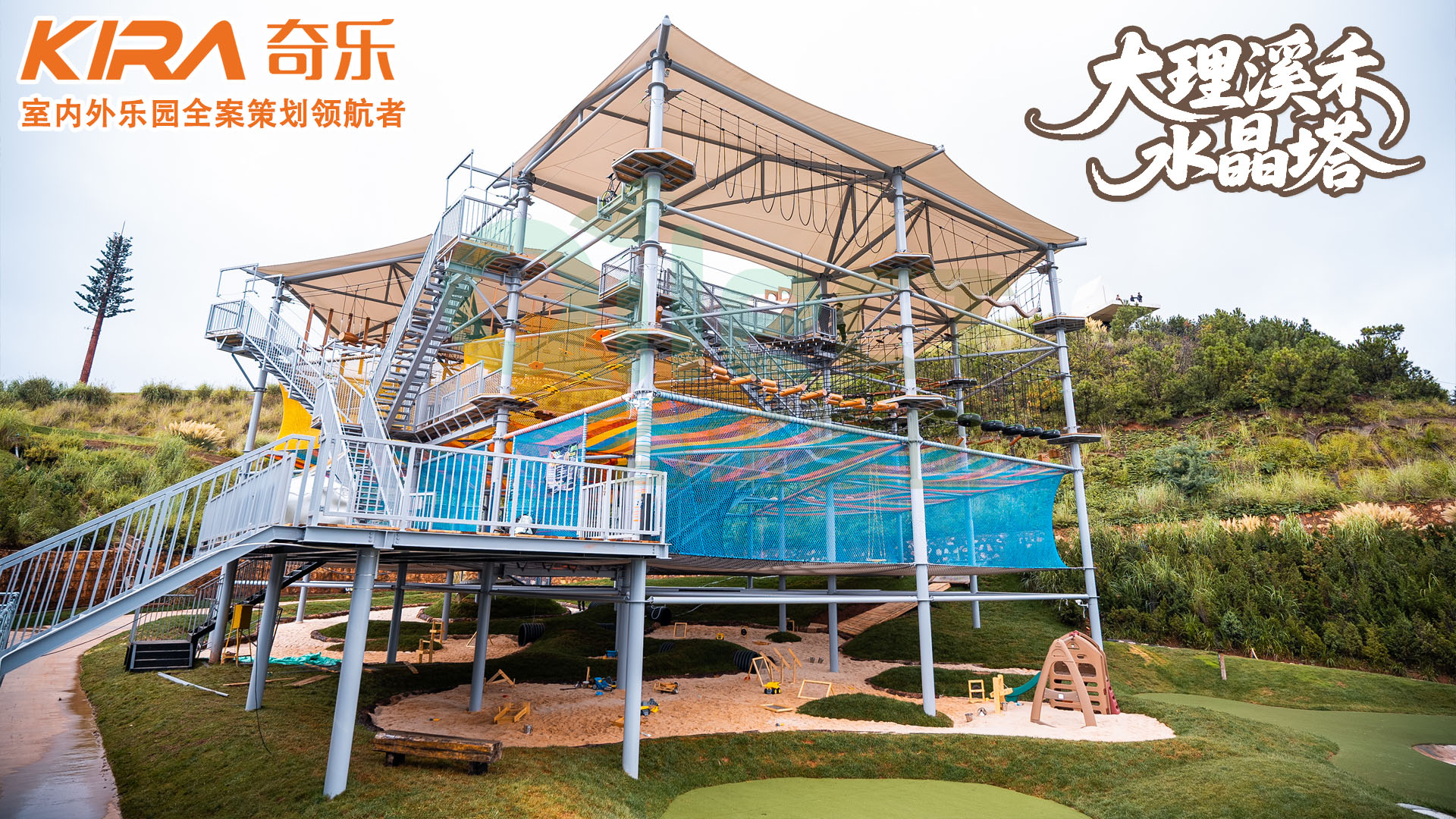 在北京溫榆河阿爾法探險營地,廣州奇樂游樂設備有限公司打造了一座高29.8米、分為六層的水晶塔。該項目巧妙地將中國傳統(tǒng)文化元素融入設計,從民族風情、中華瑰寶到節(jié)氣文化、民俗非遺,每一層都呈現(xiàn)不同的文化主題。